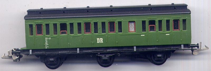 Erwerben Sie ein gut erhaltenes Modell eines dreiachsigen, grünen Abteilwagens der DR für die Nenngröße TT. Hersteller des Modells war Berliner TT-Bahnen (DDR-Produktion). Der Wagen ist Gebrauchtware.