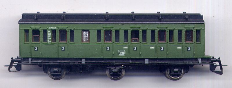 Erwerben Sie ein gut erhaltenes Modell eines dreiachsigen, grünen Abteilwagens 2. Klasse der DB für die Nenngröße TT. Hersteller des Modells war Berliner TT-Bahnen (DDR-Produktion). Der Wagen ist Gebrauchtware.