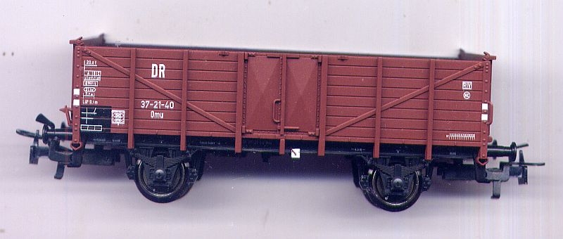 Erwerben Sie ein Modell eines zweiachsigen, braunen O-Wagens vom Typ Omu der DR für die Nenngröße H0. Hersteller des Modells war Trix International.