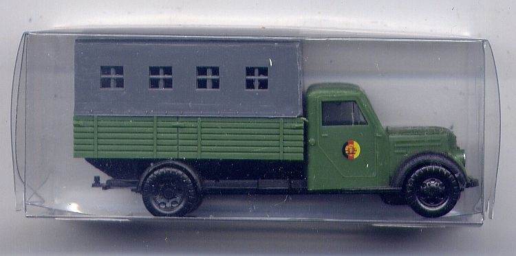 Erwerben Sie Modell eines grünen DDR-LKW´s vom Typ Robur Garant als Mannschaftswagen der NVA mit Pritsche / Plane für die Nenngröße H0. Hersteller des Modells war BeKa.