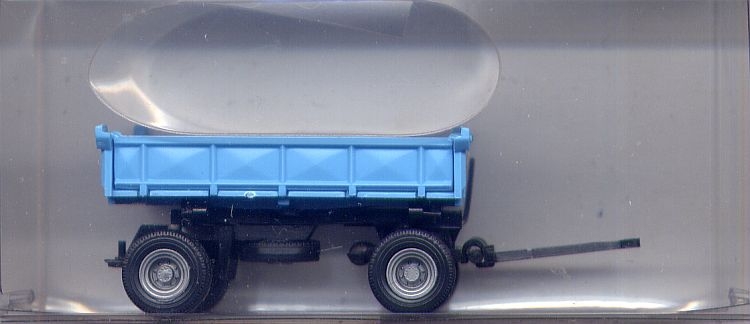 Erwerben Sie ein Modell eines hellblauen DDR Kipp-Anhängers für die Nenngröße H0. Hersteller des Modells war SES / Modelltec.
