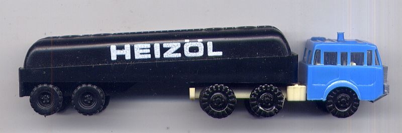Erwerben Sie ein Modell eines Tatra-Tanksattelzuges "Heizöl" mit blauem Fahrerhaus für die Nenngröße TT. Hersteller des Modells war ModellKonstrukt, Leipzig (DDR-Produktion). Das Modell ist Gebrauchtware.