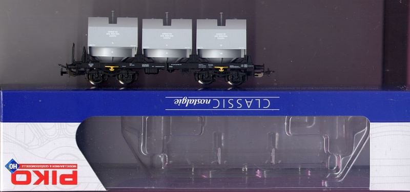 Erwerben Sie ein Modell eines vierachsigen, hellgrauen Kalkkübelwagens der DR mit 3 Kübeln für die Nenngröße H0. Hersteller des Modells war Piko. Der Wagen ist unbespielte / unbenutzte Neuware und wird in der Originalverpackung ausgeliefert.