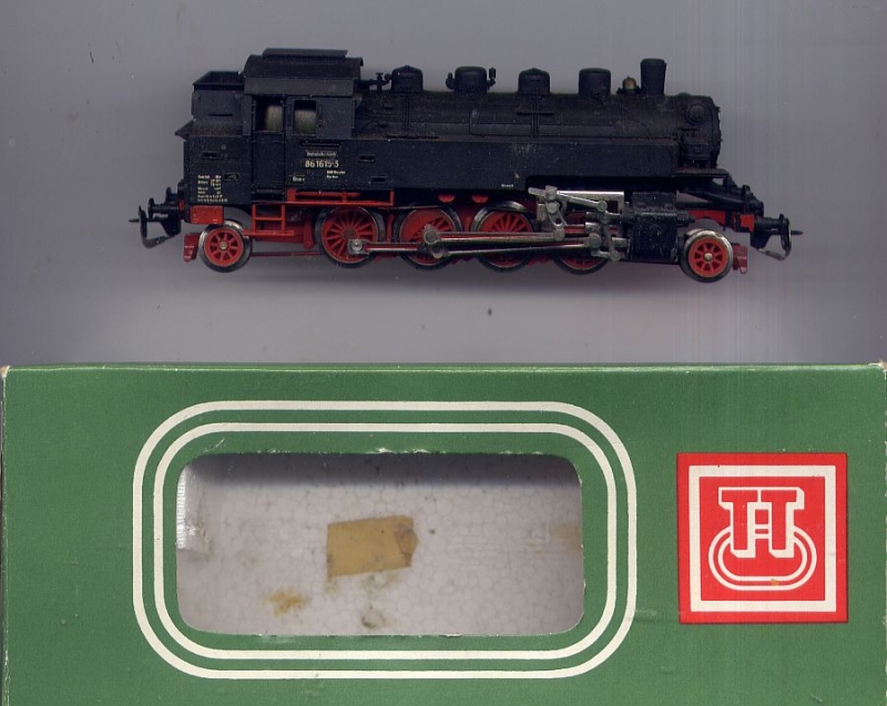 Erwerben Sie ein gut erhaltenes Modell einer Tenderlok BR 86 der DR für die Nenngröße TT. Hersteller des Modells war Berliner TT-Bahnen (DDR-Produktion). Die Lok wurde technisch überprüft und ist funktionstüchtig. Sie wird in der Originalverpackung ausgeliefert.