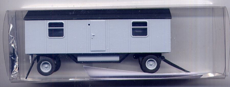 Erwerben Sie ein Modell eines zweiachsigen, grauen DDR-Baustellen-Anhängers vom Typ A8 mit 2 Fenstern für die Nenngröße H0. Zum Lieferumfang gehören diverse Zurüstteile wie Treppe mit Geländer, Lampe und Schornstein! Hersteller des Modells war SES / Modelltec. Das Modell ist unbespielte / unbenutzte Neuware und wird in der Originalverpackung ausgeliefert.