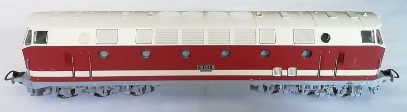 Erwerben Sie ein Modell einer sechsachsigen, rot / elfenbein-farbenen Diesellok BR 119 057-8 der DR (das sog. "U-Boot") mit Spitzenlicht oben für die Nenngröße H0. Hersteller des Modells war Piko. Die Lok ist unbespielte / unbenutzte Neuware und wird in der Originalverpackung ausgeliefert.