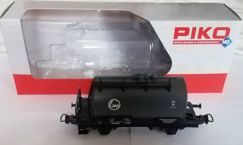 Erwerben Sie ein Modell eines zweiachsigen, dunkelgrauen Kesselwagens "EVA" der DB für die Nenngröße H0. Hersteller des Modells war Piko. Das Modell ist unbespielte / unbenutzte Neuware und wird in der Originalverpackung ausgeliefert.
