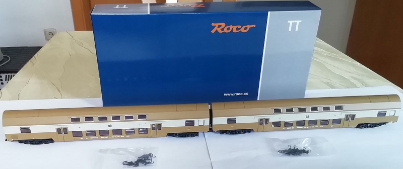 Erwerben Sie ein 2er Set mit Modellen des vierachsigen Doppelstock-Einzelwagens (sog. "Senftöpfe") der DR in der abgebildeten Farbgebung für die Nenngröße TT. Hersteller des Sets war Roco (ex Kühn-Modelle).Die Wagen sind unbenutzte / unbespielte Neuware und werden in der Originalverpackung ausgeliefert. Abbildung sind Bestandteil der Artikelbeschreibung!