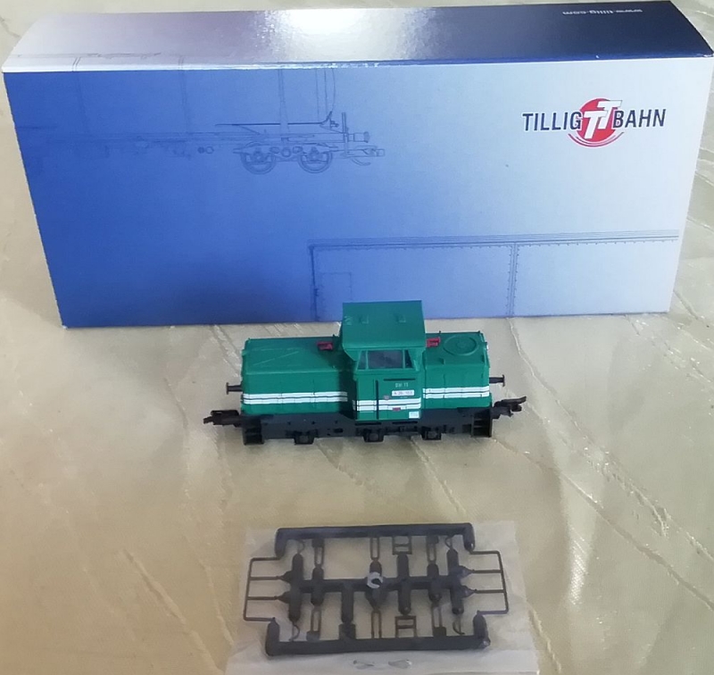 Erwerben Sie ein gut erhaltenes Modell einer dreiachsigen, grünen Diesellok R A26 (entspricht CSD-BR T334) einer ungarischen Werkbahn für die Nenngröße TT. Hersteller des Modells war Tillig.