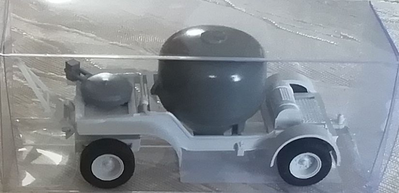 Erwerben Sie ein gut erhaltenes Modell eines grau / hellgrauen DDR-Zementsilo-Anhängers (die sog. "Zementbirne") für die Nenngröße H0. Hersteller des Modells war SES / Modelltec.