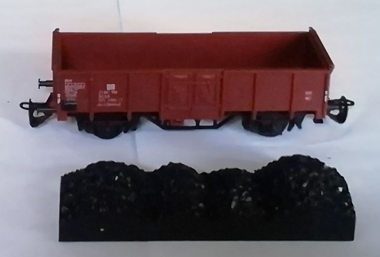 Erwerben Sie ein gut erhaltenes Modell eines zweiachsigen, braunen O-Wagens der Gattung Es-u der DR mit (herausnehmbarer) Kohle-Ladung für die Nenngröße TT. Hersteller des Modells war Berliner TT-Bahnen (DDR-Produktion). Der Wagen ist Gebrauchtware.