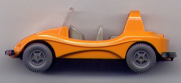 Erwerben Sie ein gut erhaltenes Modell eines gelborange-farbenen sog. Strand-Buggys vom Typ VW 1303 für die Nenngröße H0. Hersteller des Modells war Wiking.