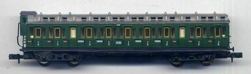 4achsiger Abteilwagen 3. Klasse, grün mit Bremserhaus für Spur N (Nr. 1)