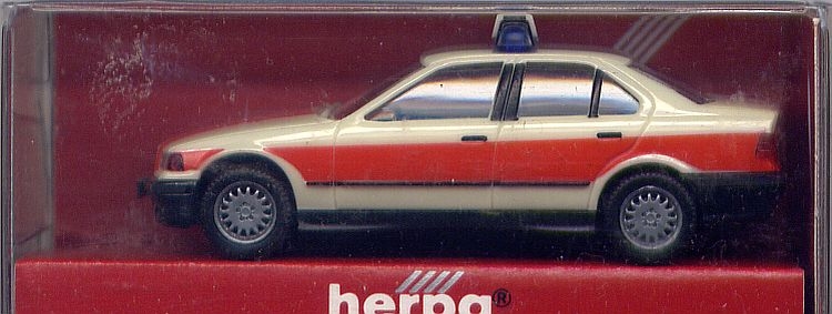Erwerben Sie ein gut erhaltenes Modell eines Notarzt-PKW´s vom Typ BMW 325i in der abgebildeten Farbgebung für die Nenngröße H0. Hersteller des Modells war Herpa.