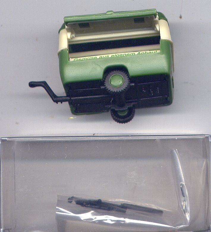 Erwerben Sie ein Modell eines Gemüse-Verkaufsanhängers in der abgebildeten Farbgebung für die Nenngröße H0. Hersteller des Modells ist SES / Modelltec. Das Modell ist unbespielte / unbenutzte Neuware und wird in der Originalverpackung ausgeliefert. Die Zurüstteile liegen selbstverständlich bei.