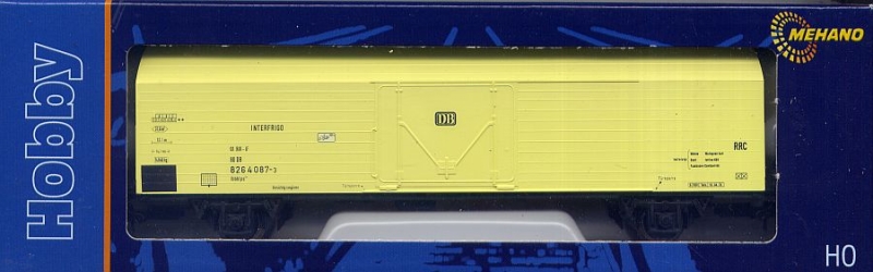 Erwerben Sie ein Modell eines zweiachsigen, beige-farbenen Kühlwagens vom Typ Ibbhs-41 der DB für die Nenngröße H0. Hersteller des Wagens ist Mehano.